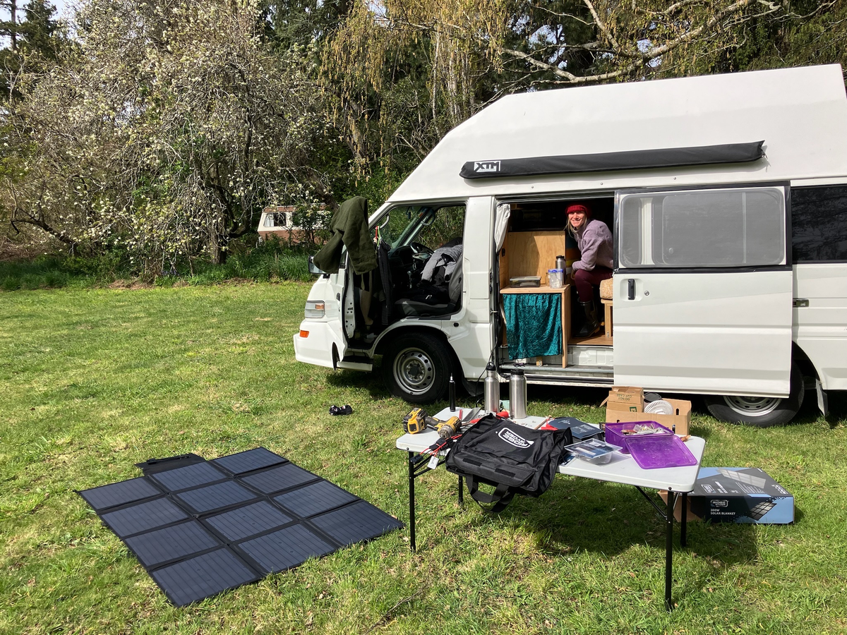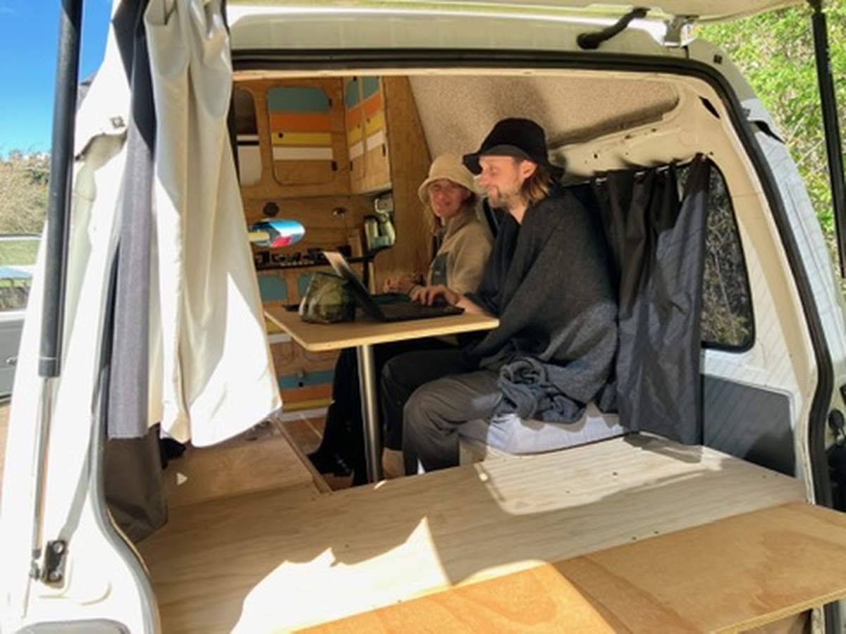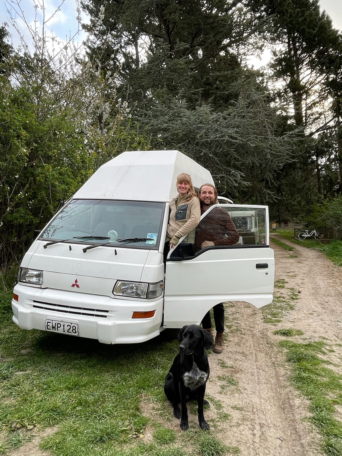 Hier ist jetzt der Frühling angekommen, tagsüber wird es in der Sonne schon richtig heiß, nachts waren es für einige Tage noch Minusgrade und an einem Morgen war die kleine Farm mit Schnee bedeckt. Umso besser, dass wir die Abende zum Kochen und Erzählen im warmen Bus verbracht haben und Liz uns nie ohne Wärmflasche eine Gute Nacht wünschte. Den Jetlag hatten wir gut überstanden und entschieden uns, die ersten zwei Vormittage direkt mit zu verschiedenen Wochenendmärkten zu gehen. Hier verkaufen Liz und Tom französische Crêpes und wir konnten die Gegend kennenlernen und erste organisatorische Dinge wie Sim-Karte kaufen erledigen, und das Internet nach Campervans durchforsten. Nach sorgsamer Durchsuche von Facebook Marketplace schauten wir uns drei Vans an und entschieden uns letztendlich nach nur einer Woche für einen ausgebauten Mitsubishi. Unsere Kriterien waren neben einem dritten Sitz vorne auch ein hohes Dach zum Stehen, weniger als 300.000 gefahrene Kilometer, am liebsten manuell, ausgestattet mit Solar, „self contained“-Plakette und das alles bitte für höchstens 10.000 Euro. Dass wir irgendwo Abstriche machen mussten, wurde uns beim Anschauen der ersten Campervans schnell klar und da „Herbie“ fast alle Kriterien erfüllte, kauften wir ihn auch trotz einiger Mängel, was im Übrigen wesentlich unkomplizierter ist als in Deutschland und man mit einem ausgefüllten Dokument und Reisepass einfach zur nächsten Post laufen kann. In Neuseeland werden die Autos allerdings auch gefahren, bis der Reifen abfällt und auch bei den TÜVs wird gerne mal ein (oder beide?) Augen zugedrückt. Da weder Matthias noch ich Ahnung von Autos haben ging es also auch erstmal direkt zur Werkstatt, um Herbie auf Herz und Nieren zu prüfen, fielen durch den TÜV durch, ließen reparieren und erneut prüfen. Mit frischer WOF (Warrant of Fitness) ging es einen Tag später wieder zum Mechaniker, um die undichte Tür, den dauerhaft blinkenden Warnblinker und die Bremsen überprüfen zu lassen, die nach einer Fahrt mit angezogener Handbremse glühten (upsi). Somit war unser Auto-Budget auch ausgereizt und wir hoffen, dass uns der Van ohne größere Zwischenfälle nun für ein Jahr als Zuhause und fahrbarer Untersatz dienen wird. Der Vorteil eines Vans mit „self contained“ Plakette (dafür braucht man Dinge wie eine fix installierte Toilette und Spüle mit Frisch-Wasser und Abwasser-Container) ist es, dass man auf sogenannten „Freedom Camps“ umsonst stehen darf- und davon gibt es hier nicht wenige.
