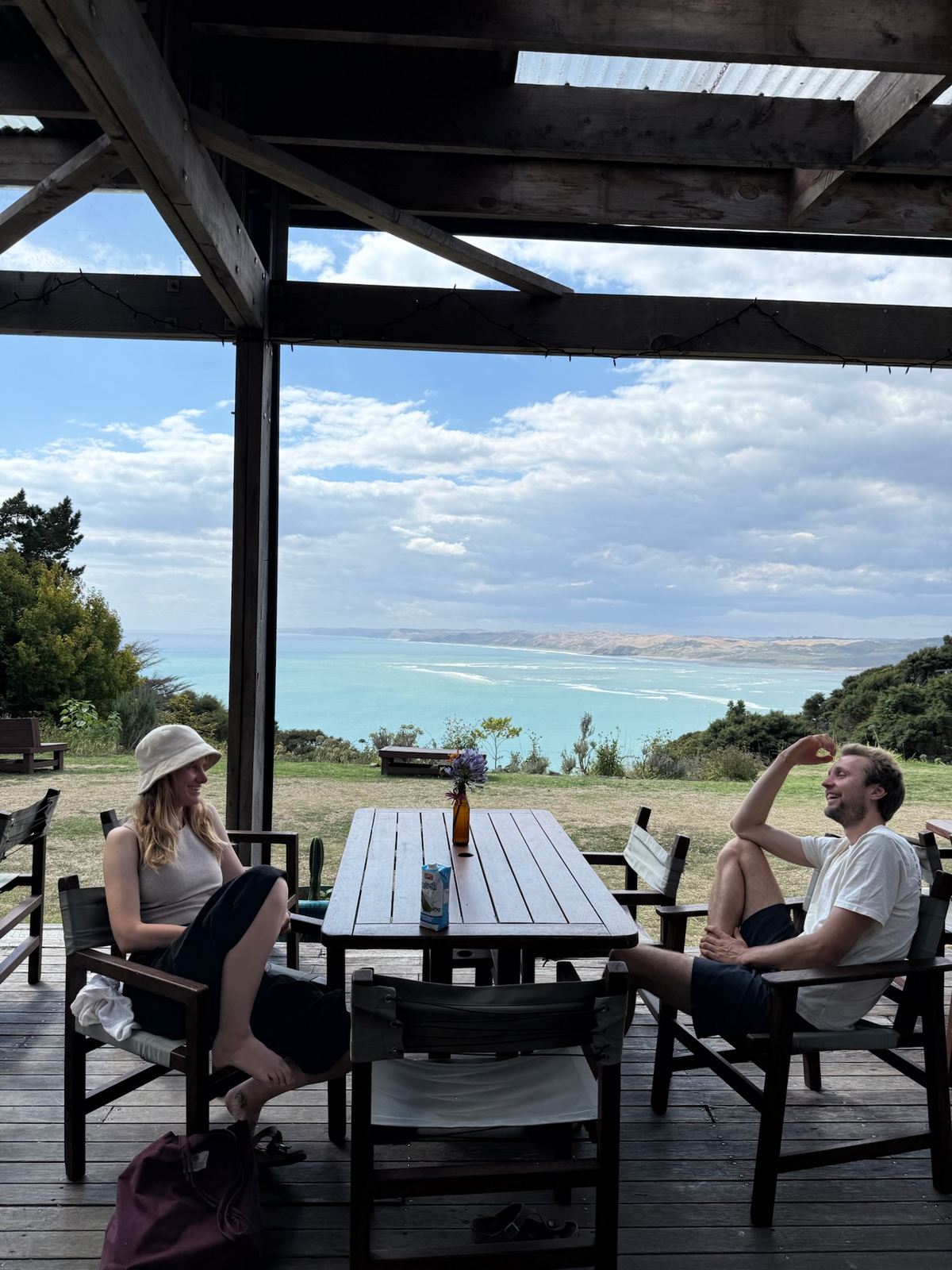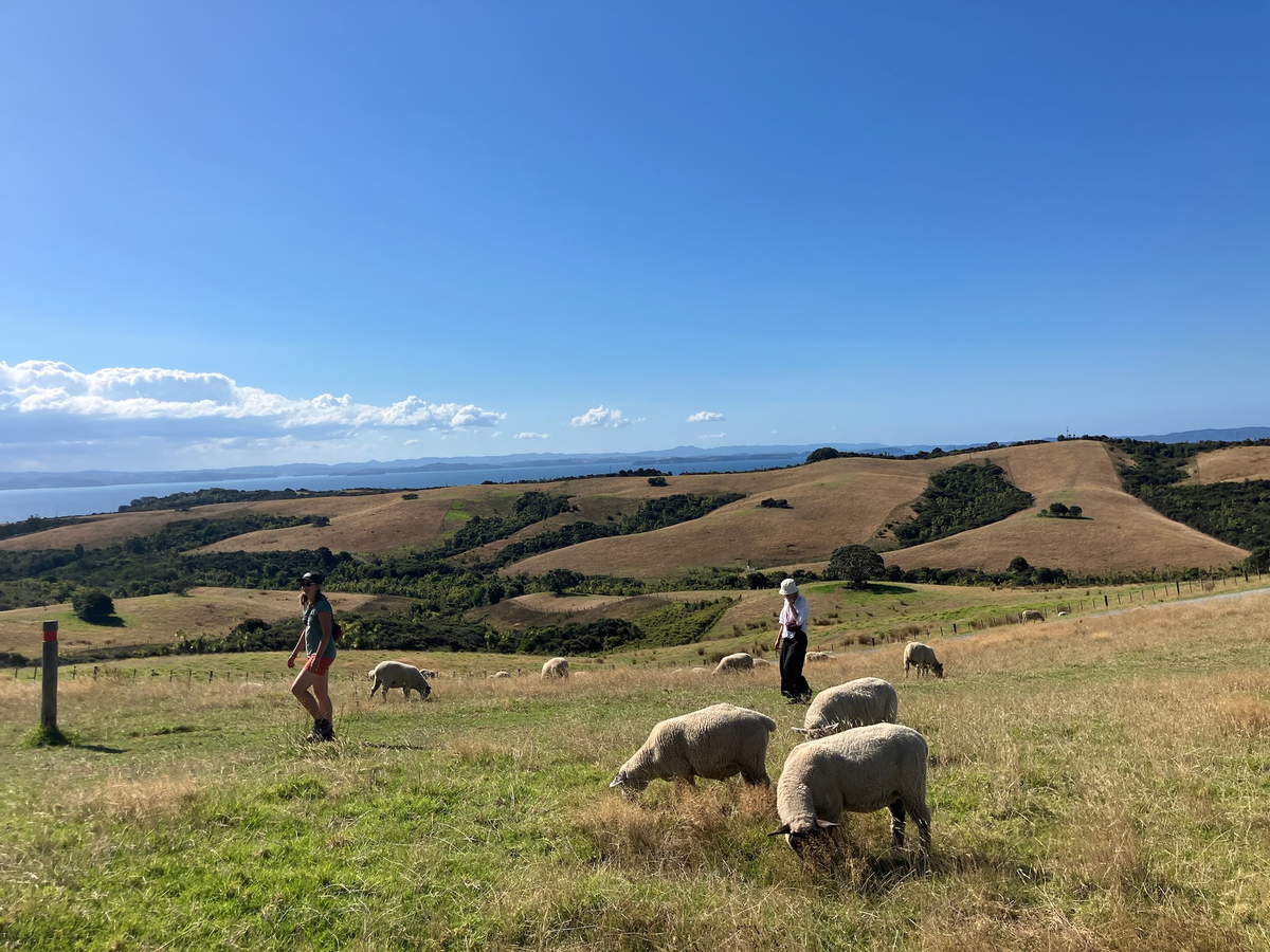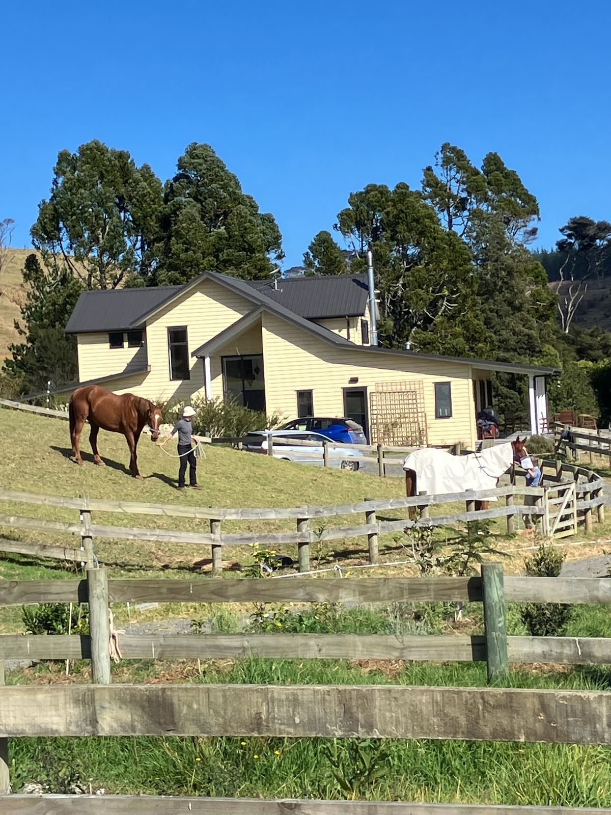 In Raglan kümmerte ich mich auch um Jobs in Deutschland, und noch bevor wir abreisten, hatte ich einer Stelle in der neurologischen Reha (Schmieder Kliniken) zugesagt, bei der ich am 1.5.2025 mit einer Vollzeitstelle als Physiotherapeutin starten werde. Als wenn das nicht schon ein großer Schritt in Richtung Realität wäre, haben wir auch noch eine Zusage für eine wirklich tolle Wohnung in Heidelberg bekommen. Eine große Erleichterung, denn der einzige Markt, der schwieriger ist als Aucklands Campervan-Markt im März, ist vermutlich der bezahlbare Wohnraum-Markt in Heidelberg. Die letzten Tage in Raglan waren wie ein langer Ausatemzug, nachdem wir lange die Luft angehalten hatten. Ich bin mir bewusst, dass unsere „Probleme” im Vergleich zu dem, was sonst in der Welt gerade so passiert, klein sind, aber trotzdem wollen wir es mit euch teilen. Unsere Zeit in Neuseeland ist anders gekommen, als wir es uns ausgemalt haben. Pläne ändern sich, und manchmal ist es am allerschwersten, diese loszulassen. Nicht alles kontrollieren zu können, war für mich die größte Herausforderung, aber auch die beste Erkenntnis der letzten Wochen. Und jetzt sitze ich vor dem großen Fenster mit Blick auf die Pferdeweide, auf einer Farm in der Nähe von Auckland. Matthias und ich wollten unbedingt noch eine WWOOFing-Erfahrung (Worldwide Opportunities on Organic Farms) sammeln und haben uns für unser letztes Ziel in Neuseeland bei einer wunderschönen Farm beworben. Nach einem kurzen Wiedersehen mit Robert in Auckland und einer kurzen Sightseeing-Tour ging es für uns letzte Woche also auf die Farm in der Nähe von Muriwai Beach, wo wir 4–5 h an 5 Tagen der Woche mit anpacken. Die Arbeit reicht vom Unkrautzupfen über „native bush” freischneiden bis zum Pferdeäpfel-Auflesen. Für mich ist es richtig schön, wieder in der Nähe von Pferden zu sein. Am Montag nimmt Brigitte, die Farmbesitzerin, mich mit für einen Ausritt am Strand. Dass ich das in Neuseeland noch erleben werde, hätte ich auch nicht gedacht. Gut, dass ich damals sogar meine Reithose in dieser Hoffnung eingepackt habe!! Für Matthias wird das der letzte Tag vor der Abreise sein, vielleicht wird er sich auch nochmal aufs Pferd schwingen. In dem Fall bekommt ihr sicher nochmal ein Update mit Fotos. 😉 Unsere Gastgeber sind unglaublich herzlich und wir haben wundervolle Gespräche beim Abendessen. So konnten wir zuletzt doch noch viele Kiwis und ihre Kultur besser kennenlernen.