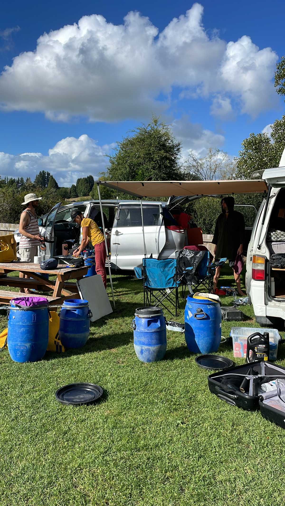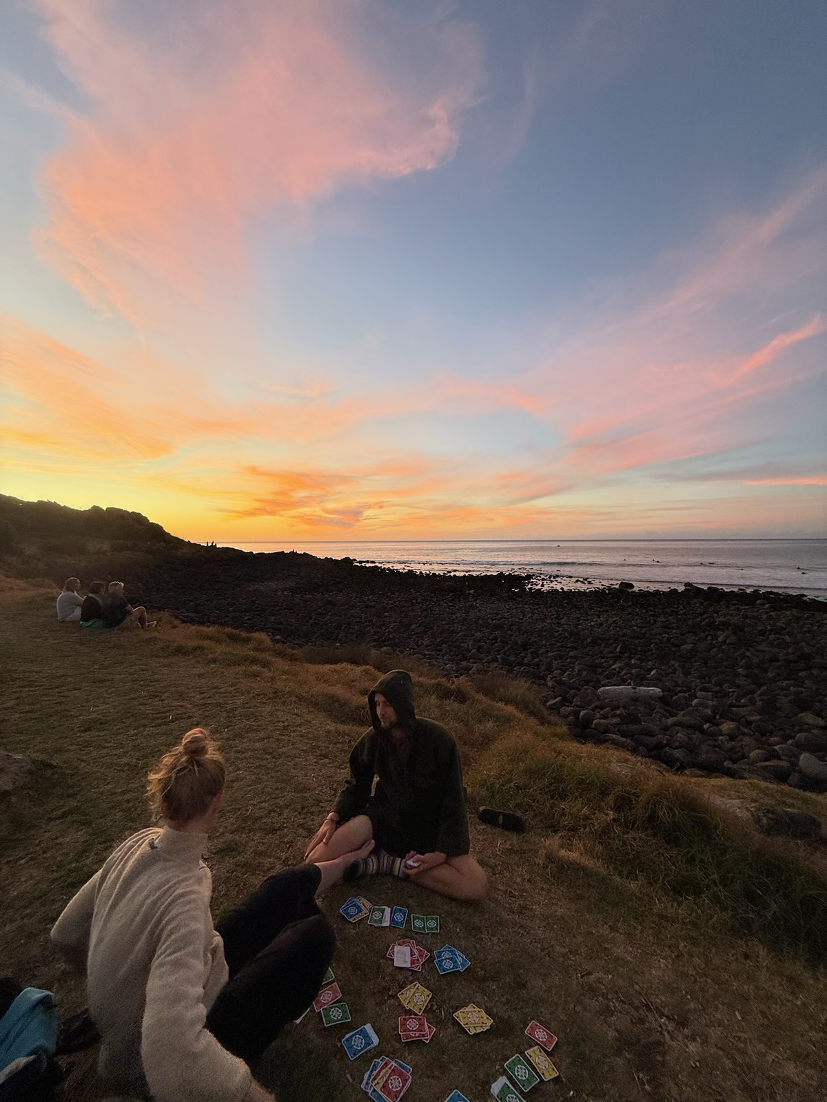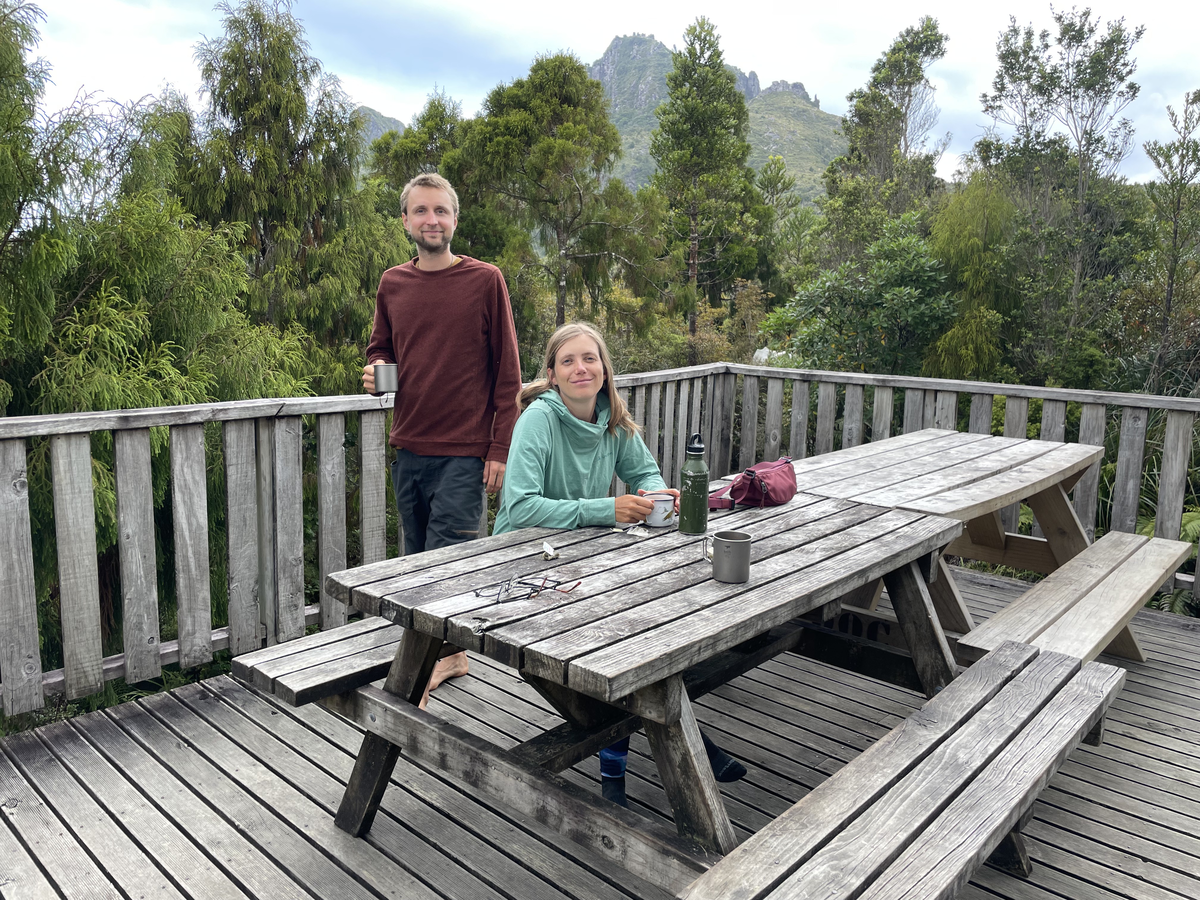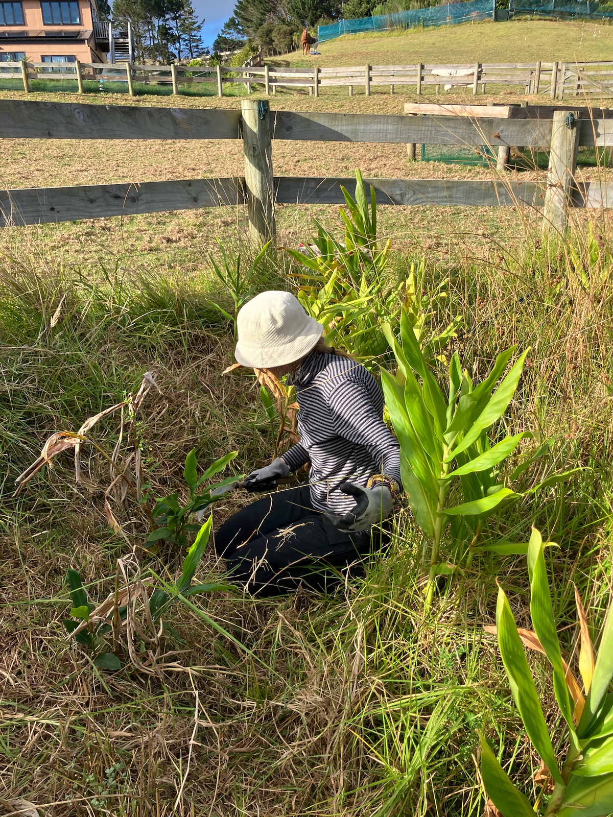 In Raglan kümmerte ich mich auch um Jobs in Deutschland, und noch bevor wir abreisten, hatte ich einer Stelle in der neurologischen Reha (Schmieder Kliniken) zugesagt, bei der ich am 1.5.2025 mit einer Vollzeitstelle als Physiotherapeutin starten werde. Als wenn das nicht schon ein großer Schritt in Richtung Realität wäre, haben wir auch noch eine Zusage für eine wirklich tolle Wohnung in Heidelberg bekommen. Eine große Erleichterung, denn der einzige Markt, der schwieriger ist als Aucklands Campervan-Markt im März, ist vermutlich der bezahlbare Wohnraum-Markt in Heidelberg. Die letzten Tage in Raglan waren wie ein langer Ausatemzug, nachdem wir lange die Luft angehalten hatten. Ich bin mir bewusst, dass unsere „Probleme” im Vergleich zu dem, was sonst in der Welt gerade so passiert, klein sind, aber trotzdem wollen wir es mit euch teilen. Unsere Zeit in Neuseeland ist anders gekommen, als wir es uns ausgemalt haben. Pläne ändern sich, und manchmal ist es am allerschwersten, diese loszulassen. Nicht alles kontrollieren zu können, war für mich die größte Herausforderung, aber auch die beste Erkenntnis der letzten Wochen. Und jetzt sitze ich vor dem großen Fenster mit Blick auf die Pferdeweide, auf einer Farm in der Nähe von Auckland. Matthias und ich wollten unbedingt noch eine WWOOFing-Erfahrung (Worldwide Opportunities on Organic Farms) sammeln und haben uns für unser letztes Ziel in Neuseeland bei einer wunderschönen Farm beworben. Nach einem kurzen Wiedersehen mit Robert in Auckland und einer kurzen Sightseeing-Tour ging es für uns letzte Woche also auf die Farm in der Nähe von Muriwai Beach, wo wir 4–5 h an 5 Tagen der Woche mit anpacken. Die Arbeit reicht vom Unkrautzupfen über „native bush” freischneiden bis zum Pferdeäpfel-Auflesen. Für mich ist es richtig schön, wieder in der Nähe von Pferden zu sein. Am Montag nimmt Brigitte, die Farmbesitzerin, mich mit für einen Ausritt am Strand. Dass ich das in Neuseeland noch erleben werde, hätte ich auch nicht gedacht. Gut, dass ich damals sogar meine Reithose in dieser Hoffnung eingepackt habe!! Für Matthias wird das der letzte Tag vor der Abreise sein, vielleicht wird er sich auch nochmal aufs Pferd schwingen. In dem Fall bekommt ihr sicher nochmal ein Update mit Fotos. 😉 Unsere Gastgeber sind unglaublich herzlich und wir haben wundervolle Gespräche beim Abendessen. So konnten wir zuletzt doch noch viele Kiwis und ihre Kultur besser kennenlernen.