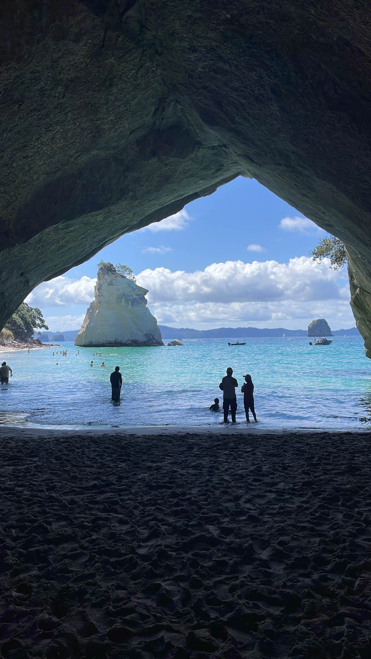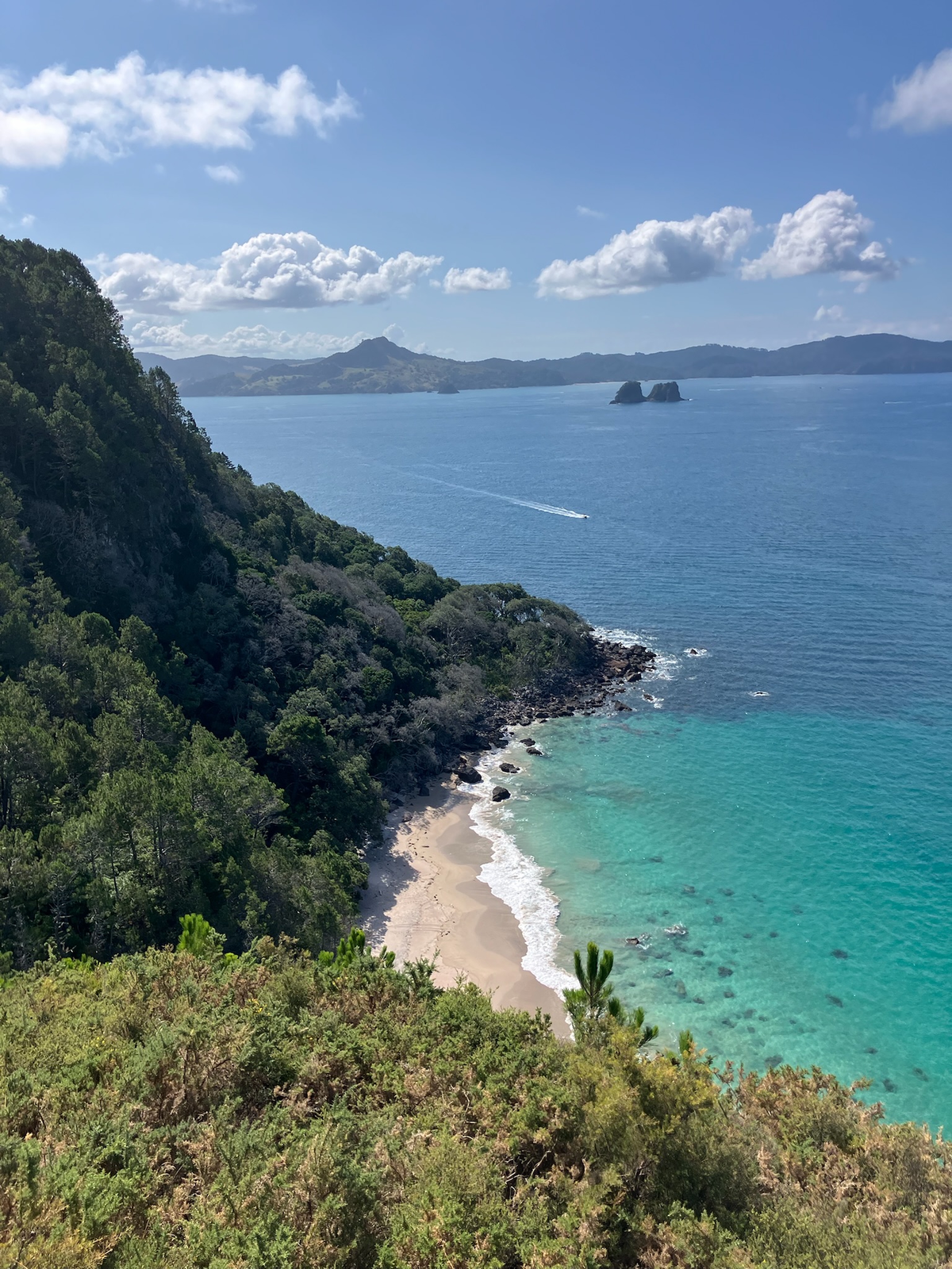 Ich konnte mit dem Stress und der Ungewissheit nicht so gut umgehen und wäre am liebsten sofort nach Auckland gefahren, um Herbie zu verkaufen. Vorbei war meine Reiselust, vorbei die Neugier, noch den Rest der Nordinsel zu sehen. Da ich aber nicht alleine unterwegs war und ein sofortiger Verkauf auch mit hohen Kosten verbunden gewesen wäre (schließlich wohnten wir zu der Zeit noch im Van und sparten dadurch viel Geld), fuhren wir erstmal nach Coromandel, um ein paar „Must Sees” abzuhaken. Dazu zählten der Hot Water Beach (hier konnte man sich eine Kuhle graben und im warmen Wasser sitzen) und die Cathedral Cove mit den wunderschönen Stränden. Wir entschlossen uns, noch eine Hüttenwanderung zu machen, und wanderten zu den „Pinnacles” hoch, einer wunderschönen Berglandschaft mit 360-Grad-Blick auf die Umgebung.