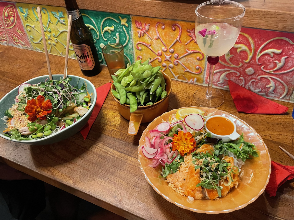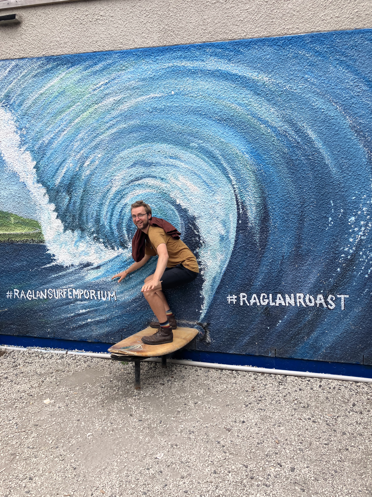 Raglan, ein kleiner Surferort an der Westküste, war die ganze Zeit unser Ziel vor Augen, und umso mehr genossen wir die Busfahrt dorthin. Zum Glück konnten wir unsere Koffer bei einem Familienfreund von Matthias, namens Robert, in Auckland lassen, und so waren es nur Matthias und ich, mit zwei Rucksäcken und einer freiwilligen Abhängigkeit von öffentlichen Verkehrsmitteln auf dem Weg nach Raglan. Gleich am ersten Abend in Raglan gingen wir auf ein Konzert von einer neuseeländisch-niederländischen Band, „My Baby”, die Matthias bei seinem ersten Aufenthalt in Neuseeland zufällig kennengelernt hat. Die weiteren Tage in Raglan fühlten sich an wie Urlaub vom Reisen. Wir schliefen in einem richtigen Bett, hatten eine große Küche, gingen jeden Tag zum Yoga, surften so oft es ging und gönnten uns das ein oder andere Essen im Restaurant. Raglan ist eine unglaublich lebendige Kleinstadt mit Farmersmärkten, Konzerten, einer Kaffeekultur und einer sehr „zurückgelehnten” Stimmung. Es war genauso, wie wir es uns vorgestellt hatten. Untergekommen sind wir bei Stuart, einem Künstler und „Local“, mit dem wir viele Abendessen und Geschichten teilten. Wir haben uns schnell wie zuhause gefühlt, Matthias hat Feigen gepflückt und ich habe Marmelade draus gemacht. Am besten war, dass meine Freundin Jessy aus Kanada zur gleichen Zeit wie wir in Raglan war und wir viel Zeit miteinander verbringen konnten. Vor einigen Wochen schon entschied ich mich dafür, gemeinsam mit ihr Ende März zurück nach Vancouver zu fliegen und dort einen langen Layover zu verbringen (18 Tage, um genau zu sein). Somit waren nicht nur Matthias’ Tage in Neuseeland gezählt, sondern auch meine. Aber manchmal muss man Gelegenheiten wahrnehmen, so wie sie kommen, und für mich war das die gemeinsame Reise mit Jessy nach Kanada.