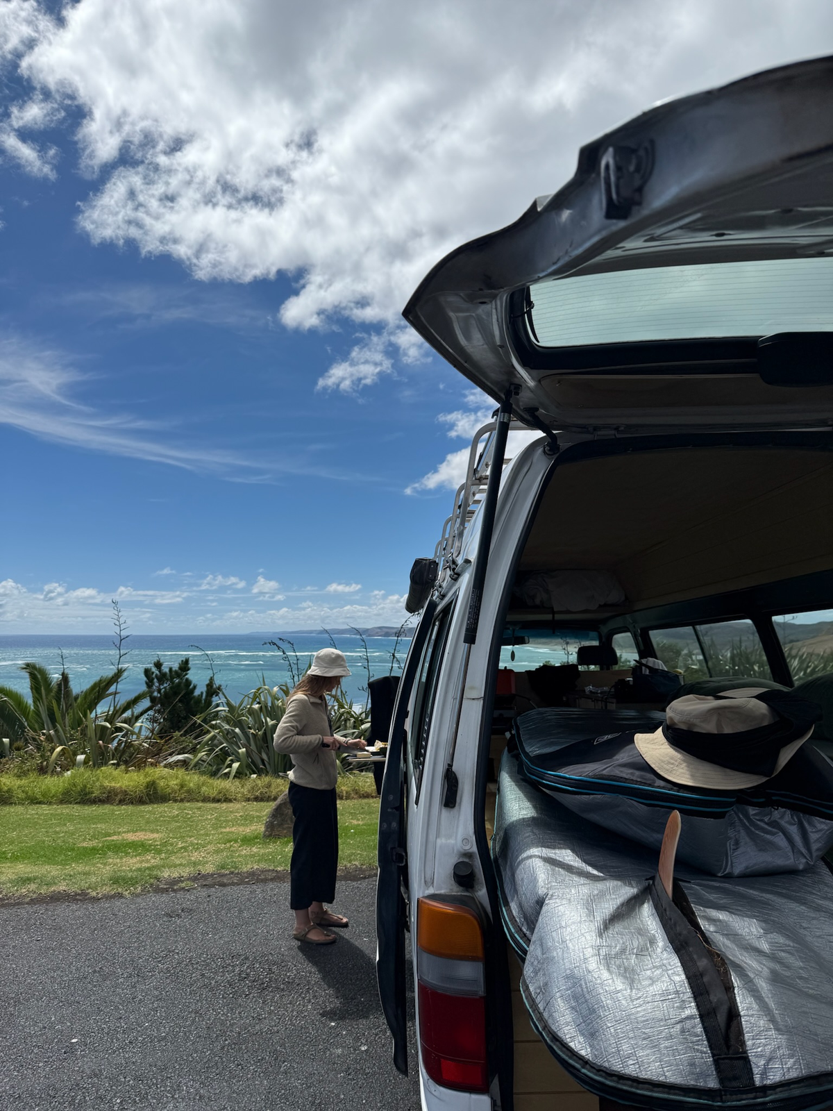 Auf einem Campingplatz nördlich von Auckland überlegten wir, wie die nächsten Wochen aussehen könnten. Einerseits war mir bewusst, dass ich vieles im Northland, wie Cape Reinga, verpassen würde, andererseits war mir das zu dem Zeitpunkt egal. Einzig mein schlechtes Gewissen Selma gegenüber, dass wir nicht wie ursprünglich geplant zusammen weitere hunderte Kilometer nördlich reisen würden, hielt mich davon ab, Herbie direkt online zu stellen. Aber auch hierfür fanden wir eine Lösung. Gemeinsam fuhren wir noch bis nach Whangarei, ca. 2 h nördlich von Auckland, und verbrachten ein paar Tage am Strand, bevor Selma per Bus alleine weiterreiste. Matthias und ich fuhren nach Auckland zurück und kümmerten uns um die Erneuerung des TÜVs (durch den wir auch durchgefallen sind, aber das ist eine andere Geschichte) und organisierten Treffen mit potentiellen Käufern. Nach einer Woche hatten wir Herbie noch immer und konnten Selma zu ihrem Abflug zum Flughafen fahren. Es dauerte eine weitere Woche, sämtliche Nerven und viel Kompromissbereitschaft, bis wir Herbie für einen „okayen” Preis an ein junges spanisches Pärchen verkauften. Die letzten Tage mit Herbie verbrachten wir auf einem Campingplatz außerhalb Aucklands. Ich bin zusätzlich noch krank geworden und Matthias und ich machten mehr als drei Kreuze, als wir die Schlüssel übergaben. So schön die Abenteuer mit Herbie waren, so glücklich waren wir, als wir kurz danach zum ersten Mal im Intercity-Bus saßen und ohne Sorgen Richtung Raglan fuhren.