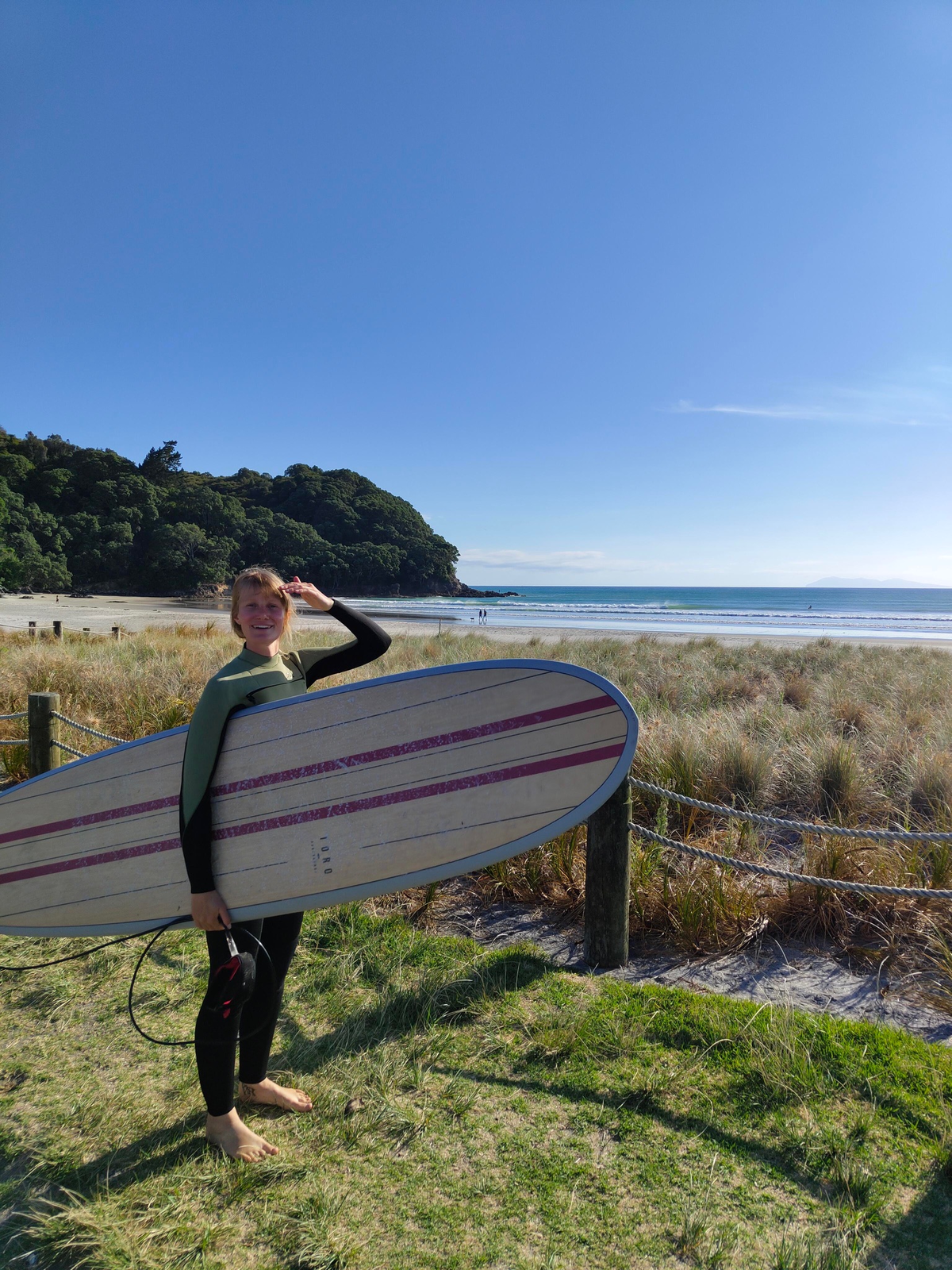 Nach dieser Woche voller Aufregung und Erlebnisse sehnten wir uns alle nach etwas Ruhe und Entspannung. Die findet man nirgends wo besser als am Meer, und so machten wir uns auf den Weg zur Ostküste, nach Waihi Beach. Hier blieben wir einige Tage zum Surfen, Chillen, Basteln und Kaffee trinken, und hier nahmen wir auch Abschied von Tobi, der sich wegen der Arbeit schon früher als Selma wieder auf den Weg nach Deutschland machen musste.